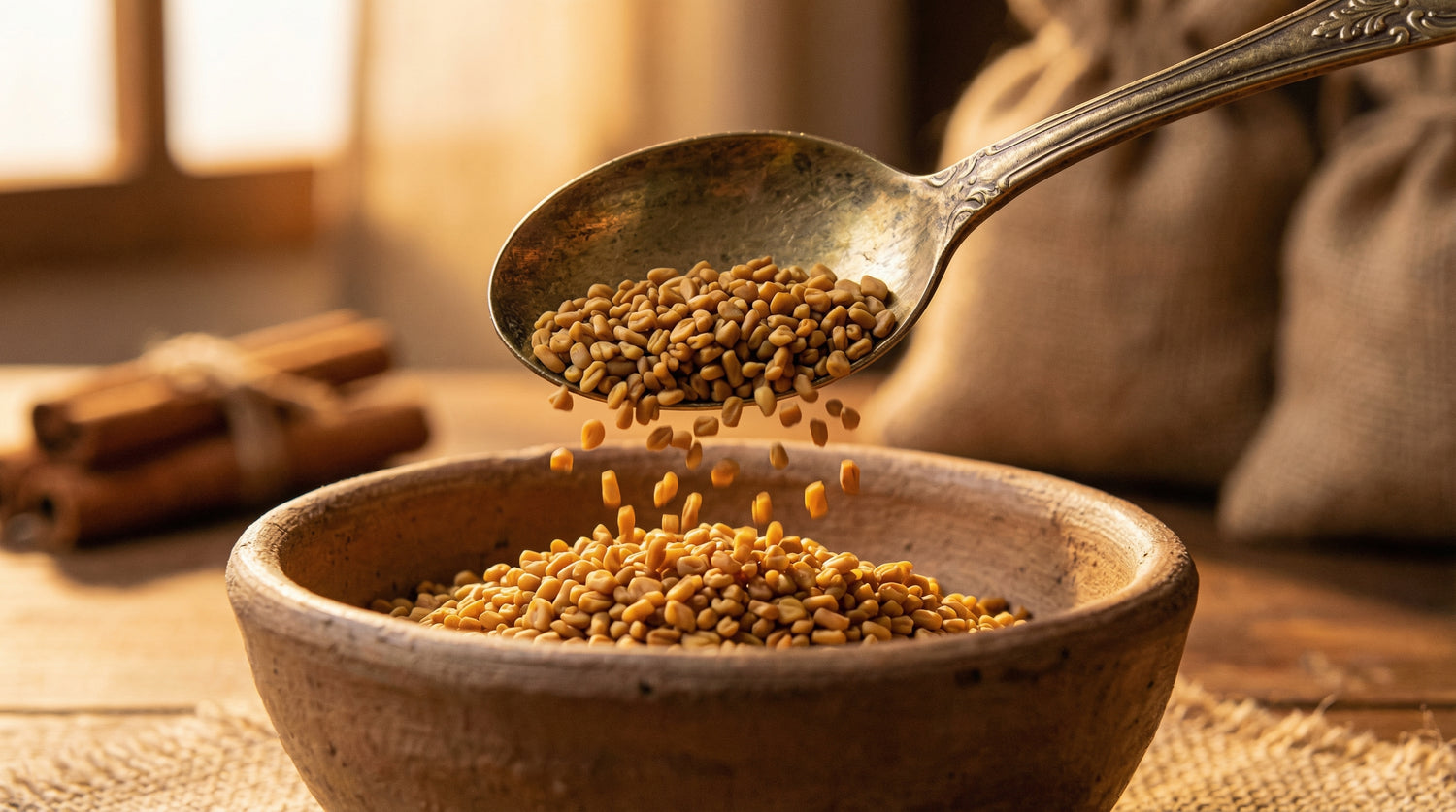 Riche en phytoestrogènes, le fenugrec aide à compenser la baisse hormonale pour atténuer l'intensité des bouffées de chaleur. Il soutient aussi une digestion saine et le métabolisme des lipides.