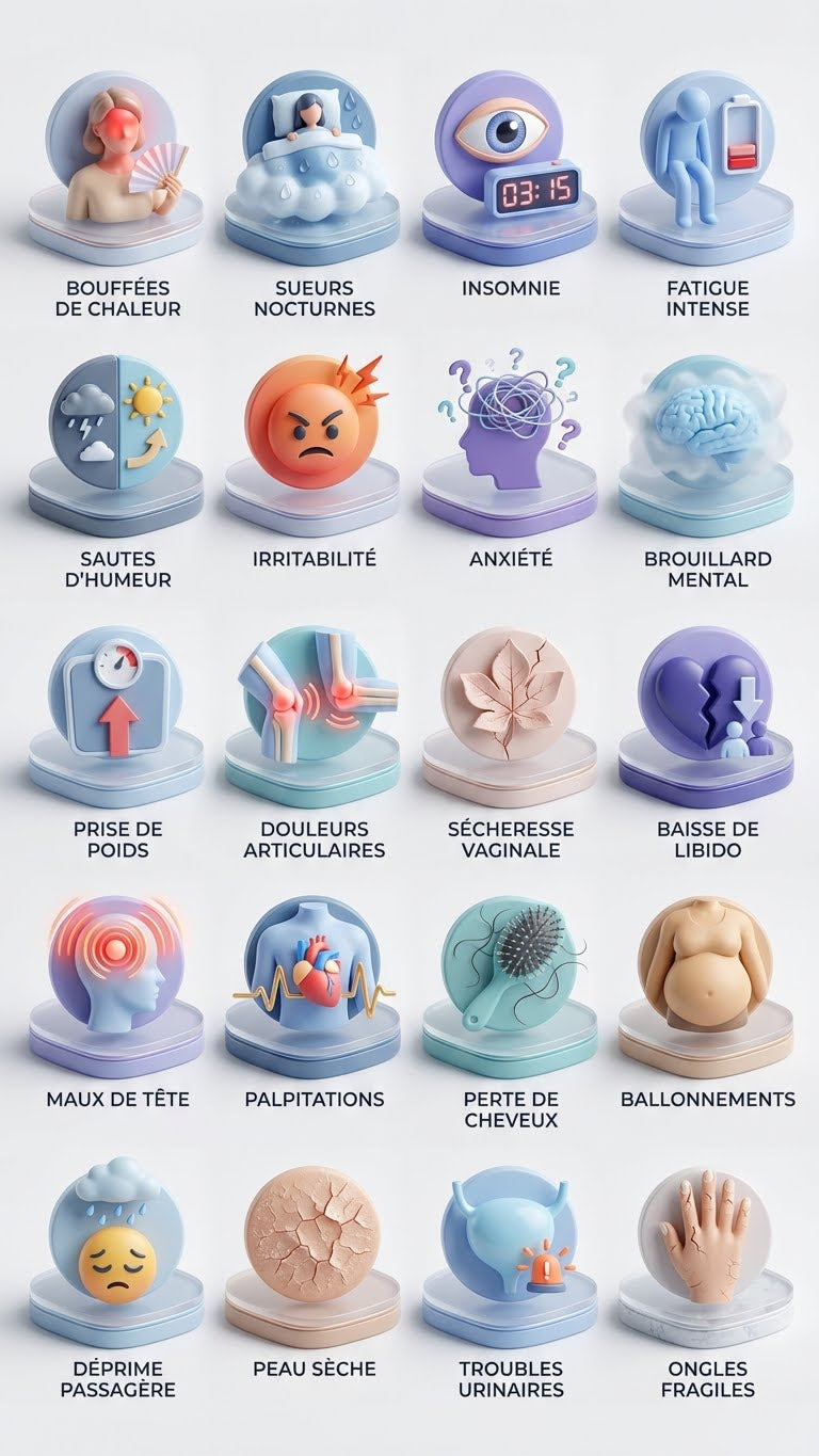 Les symptômes de la ménopause peuvent être épuisants et déstabilisants. Les bouffées de chaleur, les troubles du sommeil, les sécheresses intimes, les sautes d'humeur et les douleurs articulaires peuvent rendre chaque jour difficile à vivre et vous faire sentir déconnectée de votre corps.